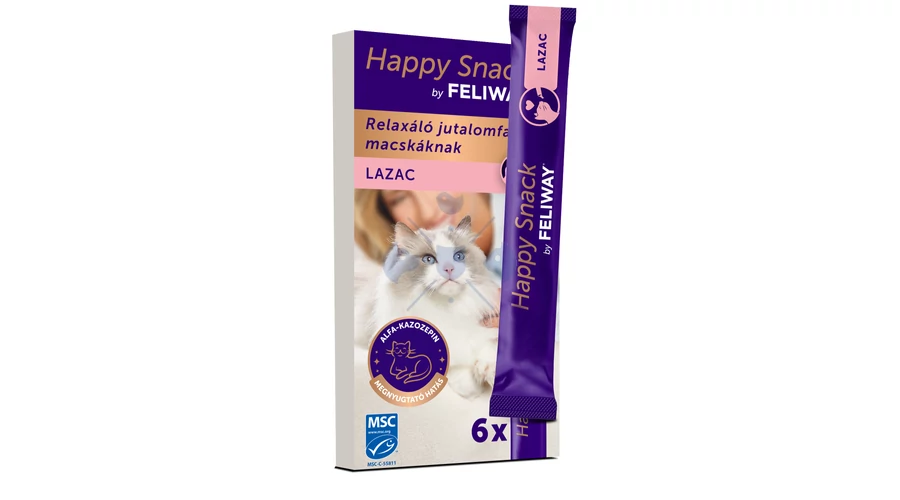 A macskák élvezik a megszokott rutint, és boldogabbnak érzik magukat, ha pozitív rituálékat élnek át, de stresszessé válhatnak, ha kihívást jelentő helyzetekkel szembesülnek, vagy ha változás áll be a környezetükben. Szorongást válthat ki a macskákban pl. az otthoni rutin megváltozása, a költözés, az állatorvosi látogatás, az utazás, vagy egy új családtag érkezése. A Happy Snack by FELIWAY alfa-kazozepinnel segít a cicáknak megbirkózni a váratlan vagy szokatlan helyzetekkel, amelyek stresszforrást jelentenek számukra.